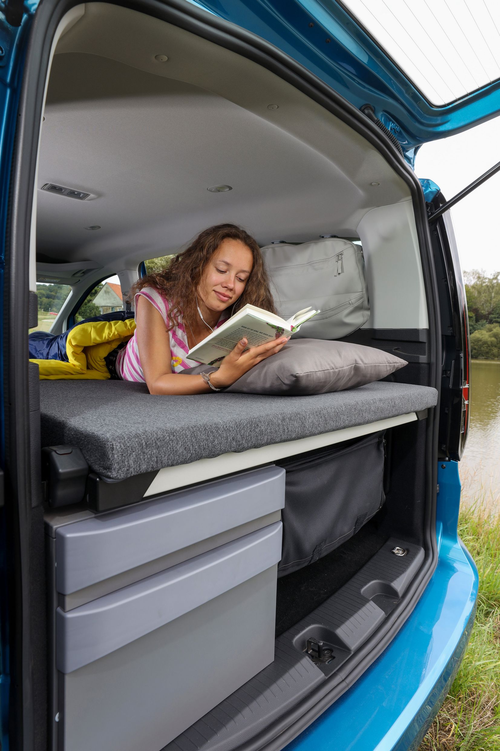 Поэтому перед поездкой сиденья второго ряда можно легко вынуть. Таким образом, Caddy California предоставляет значительно больше места для хранения вещей.