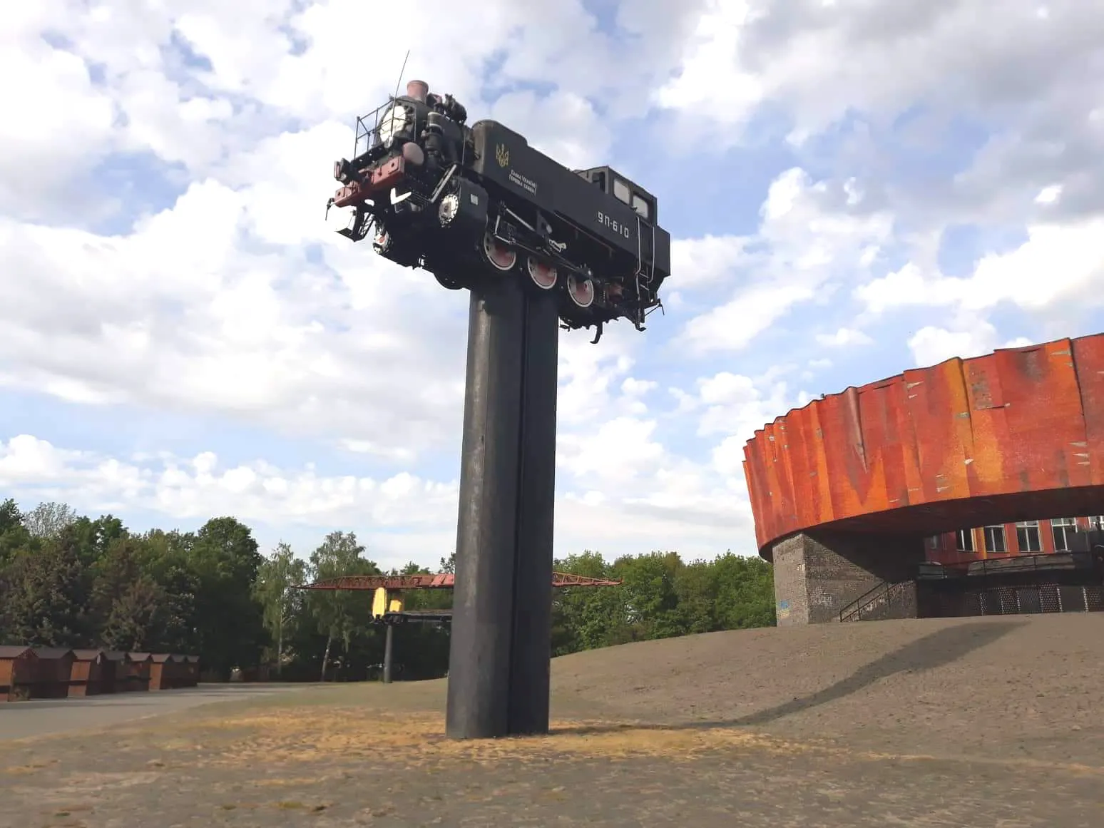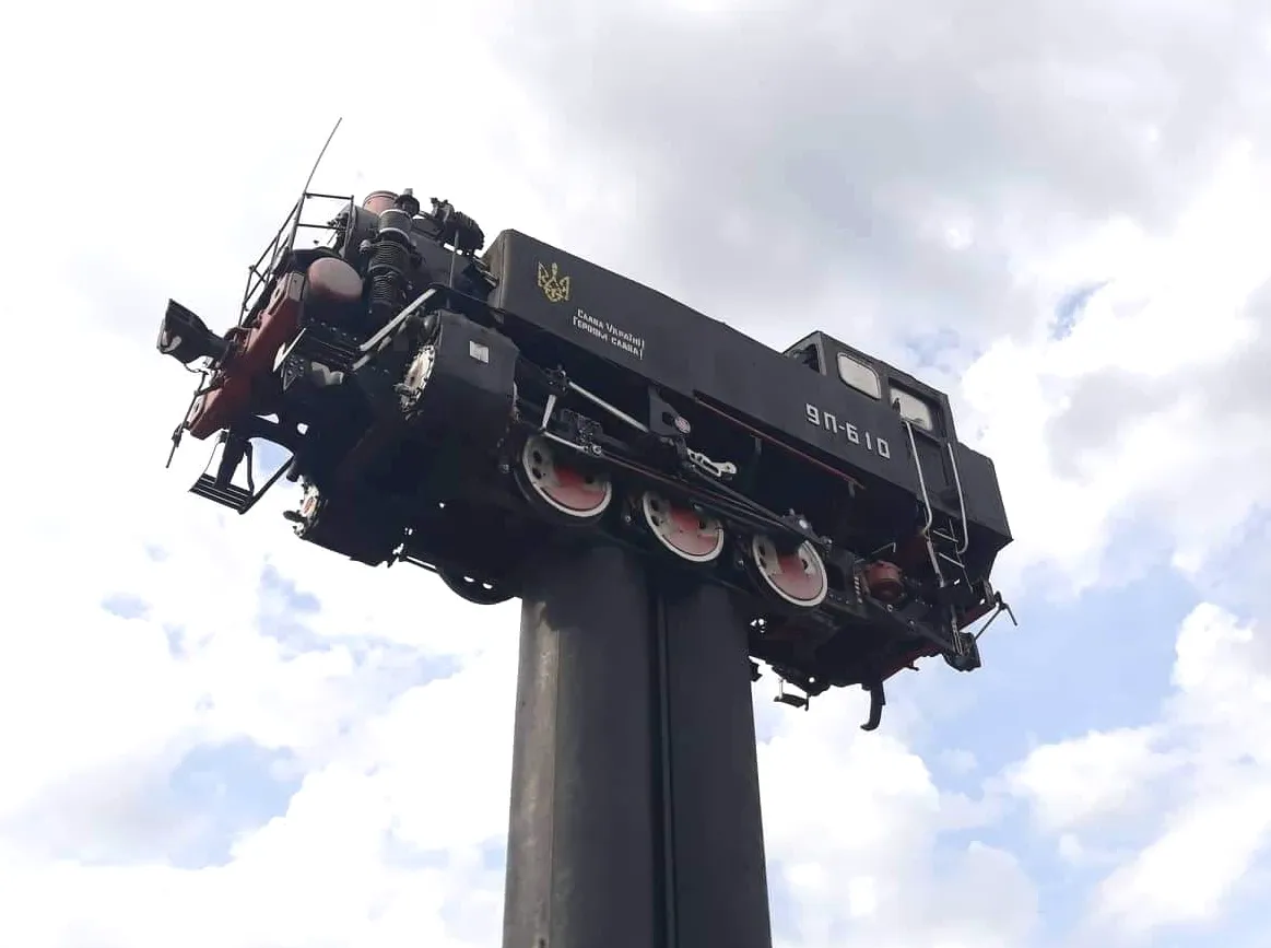 Этот памятник паровозу расположен в Шепетовке, Хмельницкой области. В отличие от других подобных монументов, тяжеленный паровоз покоится не на рельсах, а на высоченном пьедестале – спаренных многометровых трубах. Его возвели еще в 1984 году в честь 80-летия писателя Николая Островского, непосредственно около его музея.
