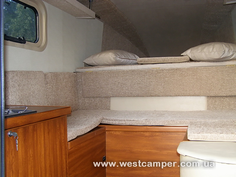 Надстройка имеет два окна, входную дверь сзади и лесенку для доступа на крышу, где установлен решетчатый багажник. Капсула теплоизолирована пенофолом. Внутри есть спальное место размером 200 х 175 см, которое находится в алькове над кабиной. Четыре места для сидения можно преобразовать в еще одну кровать размером 200х120 см.