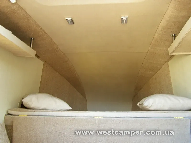 Надстройка имеет два окна, входную дверь сзади и лесенку для доступа на крышу, где установлен решетчатый багажник. Капсула теплоизолирована пенофолом. Внутри есть спальное место размером 200 х 175 см, которое находится в алькове над кабиной. Четыре места для сидения можно преобразовать в еще одну кровать размером 200х120 см.
