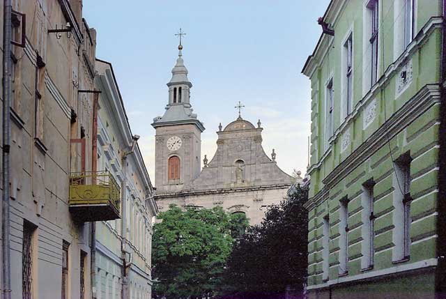 Впрочем, довольно о кулинарии – перекусив, отправляемся гулять по Золочеву. Несомненно, без внимания любопытного путешественника не должна остаться центральная – пешеходная улица, названная в честь местного уроженца, поэта и просветителя Маркияна Шашкевича. Здесь, как и полагается, расположена масса симпатичных кафешек и магазинчиков. Свернув в одну из прилегающих улочек, подходим к необычайно красивому костелу Успения Пресвятой Богородицы (XVІІІ в.), который возвышается над старинными домами благодаря своей колокольне с огромными часами. Если же вернуться на улицу Шашкевича и пройти по ней дальше, то можно выйти к городской ратуше и расположенному рядом с ней памятнику Вячеславу Черноволу; кстати, рядом находится гостиница «Украина», в которой останавливаются те, кто хочет познакомиться с Золочевом поближе.