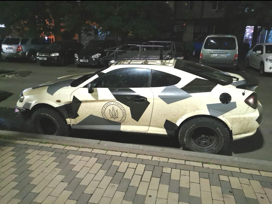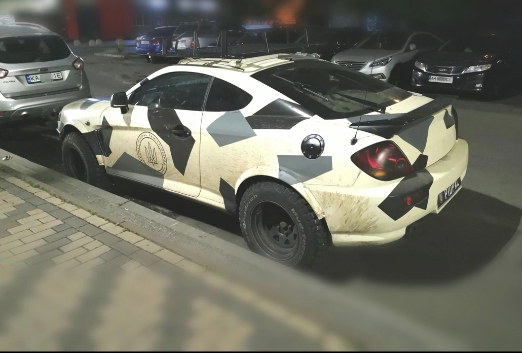Сьогодні для підвищення мобільності наших захисників у хід йдуть різні автомобілі. Перевага надається насамперед позашляховикам, особливо з кузовом пікап. Однак бувають і несподівані винятки. Днями у Києві було помічено дводверне купе Hyundai Coupe, спеціально підготовлене для їзди бездоріжжям.