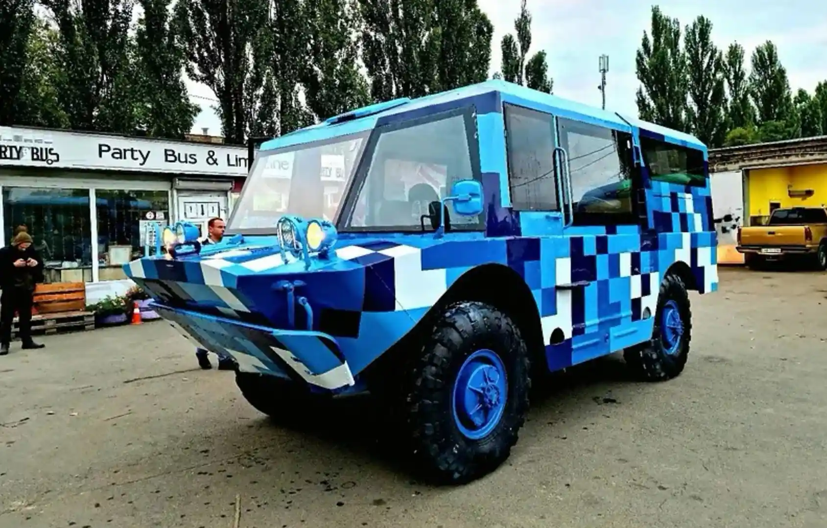 Цей БРДМ-2 був переобладнаний в одній столичній фірмі і має назву PartyTank 2021, тобто «танк для тусовок». Від усім відомої бойової дозорно-розвідувальної машини він відрізняється доволі суттєво. Почнемо з того, що тут зверху стандартного корпуса з'явилася рубка з великим бронесклом по периметру. В результаті всередині можна переміщатися майже в повний зріст.