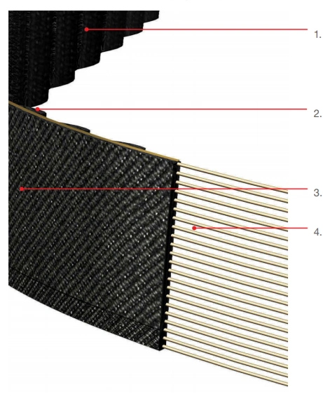 Щоб зробити це можливим, ремінь ГРМ повинен бути виготовлений зі спеціальних гумових сумішей і матеріалів для підвищення його міцності, забезпечення довготривалості роботи і стійкості до впливу оливи. Цей вид ременя виробляється зі стійкого до високих температур еластомеру ACN-HNBR, всередині якого розміщені кордові нитки зі скловолокна для міцності. Задня частина ременя посилена поліамідною підкладковою тканиною з багатошаровим покриттям для захисту від передчасного зношення, тканина з арамідного волокна з високим рівнем стійкості до термічного і хімічного впливу призначена захищати зубчасту сторону ременя.