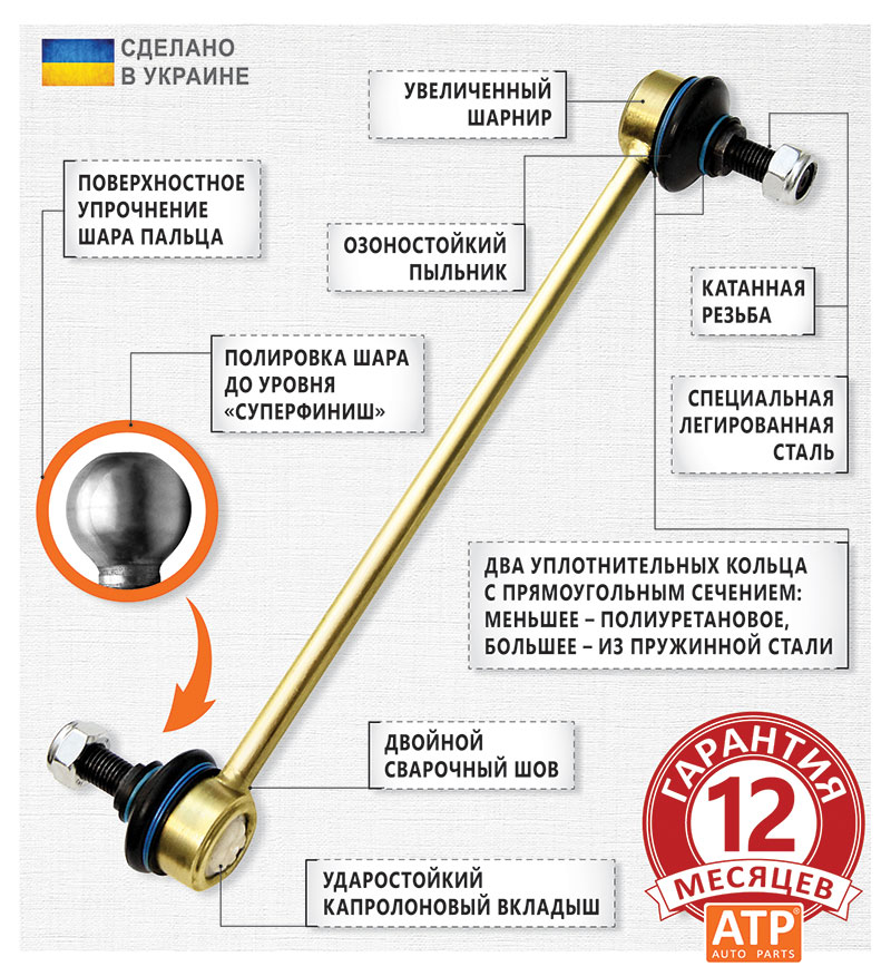 Ассортимент усиленных стоек стабилизатора торговой марки ATP auto parts перекрывает потребности около 85% украинского парка легковых автомобилей, микроавтобусов и кроссоверов