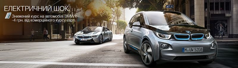 Знижений курс на автомобілі BMW i3 та BMW i8 2017 року: -5 грн. від комерційного курсу євро.