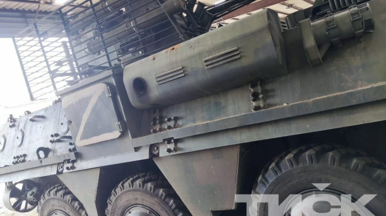 Цей БТР-4Е з 92-ї окремої механізованої бригади імені кошового отамана Івана Сірка, на жаль, був захоплений російськими окупантами ще в березні. Зовсім недавно український бійці відвоювали бронетранспортер, і він знову стане на захист нашої Батьківщини.