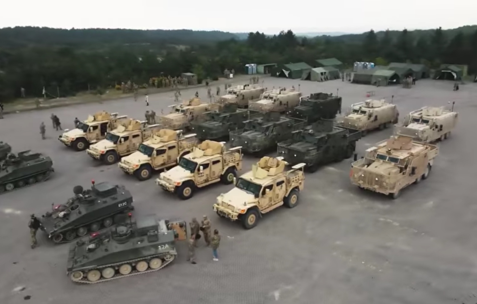 Тут можна побачити гусеничні БТР FV103 Spartan, а також колісні бронемашини Mastiff (6×6) і Husky (4×4). Всі вони вже перебувають у нас на передовій.