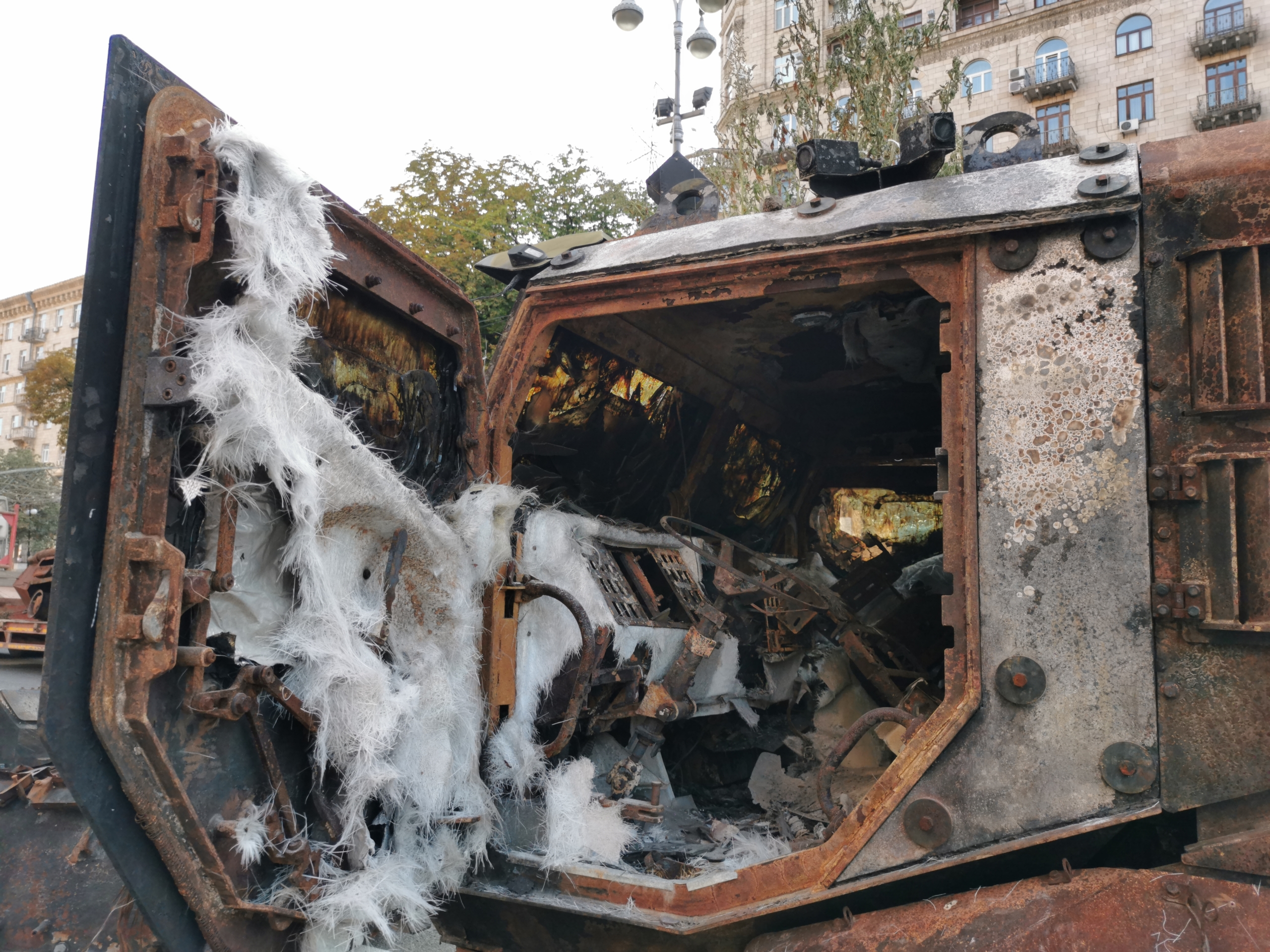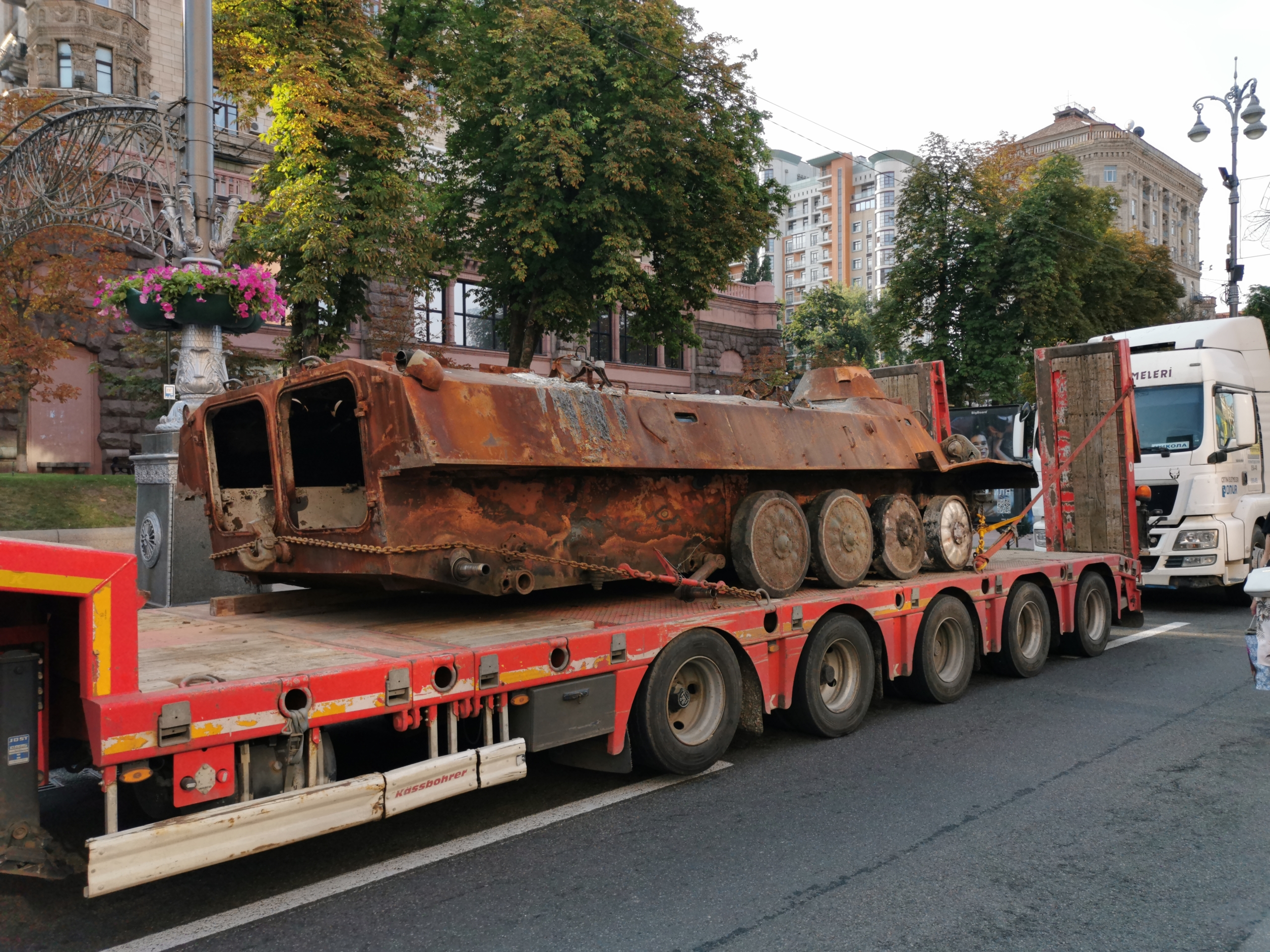 А щодо гусеничної бронетехніки, то на Хрещатику можна побачити цілий розсип підбитих танків T-72, БМП та МТЛБ, зокрема унікальний БТР-МДМ «Ракушка» на шасі BMД-4.