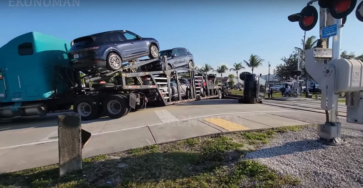 Та навіть в країнах, де панує мир, та не точаться бої загрози можуть підстерігати водіїв. Як наприклад в США, де автопоїзд заглох прямо на переїзді ЖД колії. Хеппі енд все ж був – ніхто не постраждав. Хоча здоровенний SUV з автовозу від удару пролетів в повітрі… Проте краще прочитайте новину, та подивіться відео моменту зіткнення. «Поїзд на повному ходу зніс автовоз із новими машинами — відео моменту».