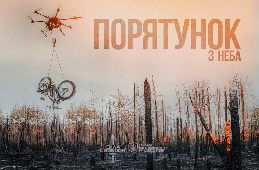 У бригаді «Рубіж» провели унікальну операцію з доставки на передову електровелосипеда за допомогою дрону