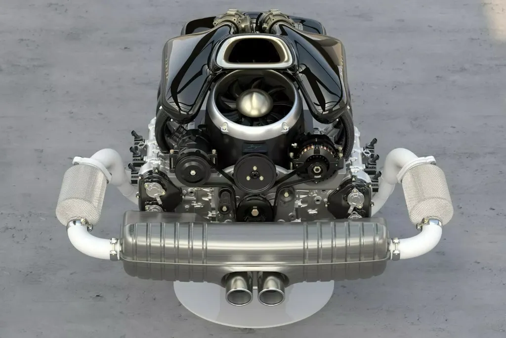 В моторном отсеке расположился атмосферный 4-литровый оппозитный шестицилиндровый двигатель, разработанный компанией Cosworth. Он развивает мощность 313 кВт/426 л.с. и крутящий момент 450 Нм. Двигатель раскручивается до более чем 8000 об/мин и оснащен системой изменения фаз газораспределения, головками цилиндров с водяным охлаждением, цилиндрами с воздушным охлаждением и электрическим вентилятором.