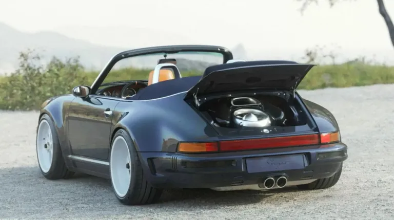 Компания Singer расширила ассортимент своих рестомодов, представив кабриолет на основе семейства 964, причем, сразу в двух вариантах – в комплектации Pacific Blue Touring и Guards Red Sport. В обоих случаях кузов выполнен из карбона, дополнен расширенными крыльями и выдвижными дополнительными фарами, встроенными в капот, что является отсылкой к гоночным автомобилям той эпохи.