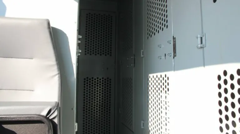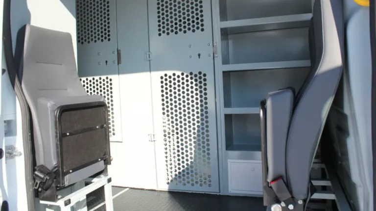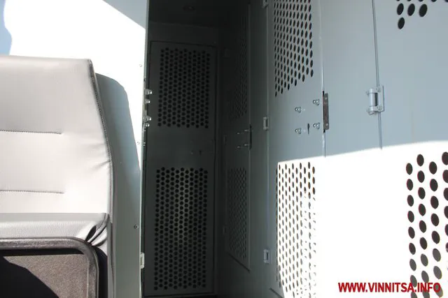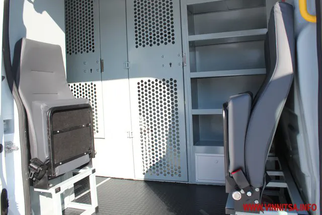 То же самое допоборудования плюс обогреватель Webasto имеет и более вместительный автозак на шасси Ford Transit. Здесь всего 15 мест – отсек для водителя и старшего конвойного наряда, отсек для конвойного наряда на трех человек, две одноместные камеры, а в задней части – общая камера для перевозки лиц, взятых под стражу.