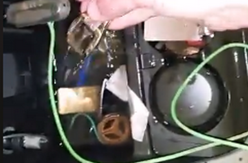 Когда владелец добрался до своего авто, то обнаружил, что оно было затоплено как минимум на треть высоты кузова. И хуже всего то, что вода и грязь проникли в салон, причем настолько, что в нише подлокотника образовался мини-бассейн.