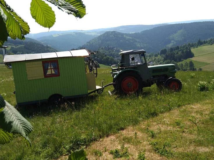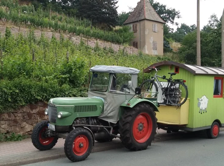 Трактор Fendt Farmer D2 Ремигий Кирхмайер приобрел 7 лет назад - и вот теперь решил испытать в дальней поездке. Для вояжа трактор состыковали с жилым прицепом – кемпером в стиле ретро.