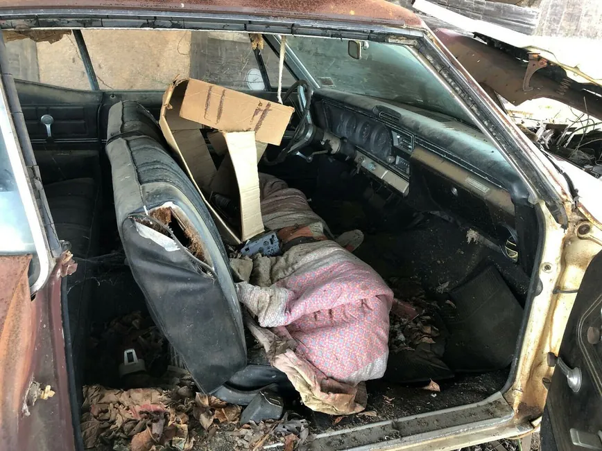 Бесхозная Chevrolet Impala простояла в поле под навесом 35 лет