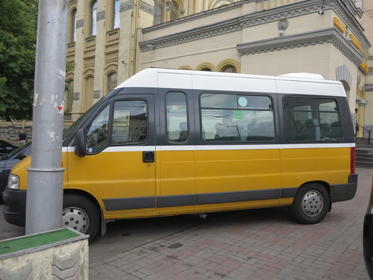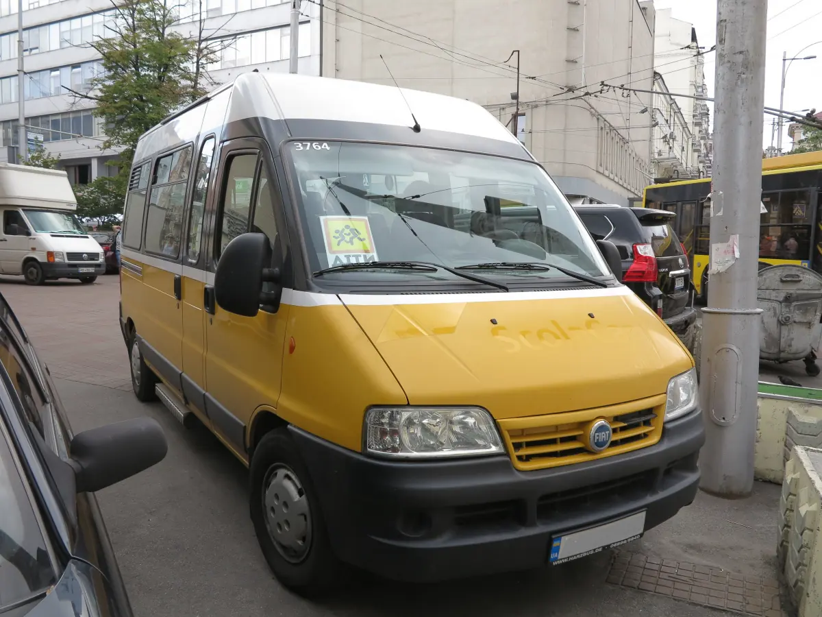 Маршрутка из Швейцарии была поставлена в Украину в качестве школьного автобуса. Она построена кузовным ателье Сarroserie Lauber SA из местечка Пранжен, у берегов живописного Женевского озера.