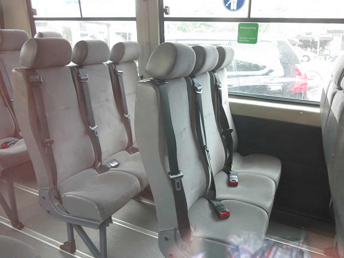 Всего в основном салоне 20 посадочных мест. Кресла специально для детей, более узкие и с меньшим шагом сидений. В итоге справа по борту удалось поставить по три кресла в ряд, а на двух задних рядах может разместиться по 5 детишек. Есть возможность дополнительной установки детских кресел – для самых маленьких.