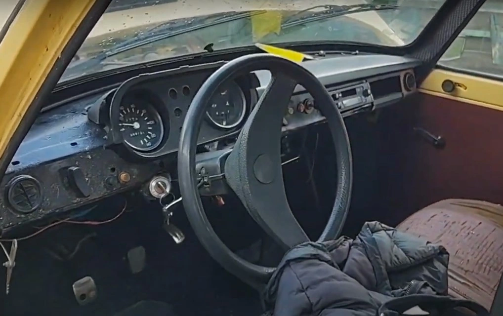 Имеются небольшие проблемы с электрикой, так как до этого в автомобиль пытались имплантировать приборную панель от Volkswagen Golf. Поэтому фары работают, а вот «поворотники» и «дворники» пока нет. В салоне еще родная обивка – заднее сиденья сохранилось более-менее, а вот водительское начало уже разваливаться.