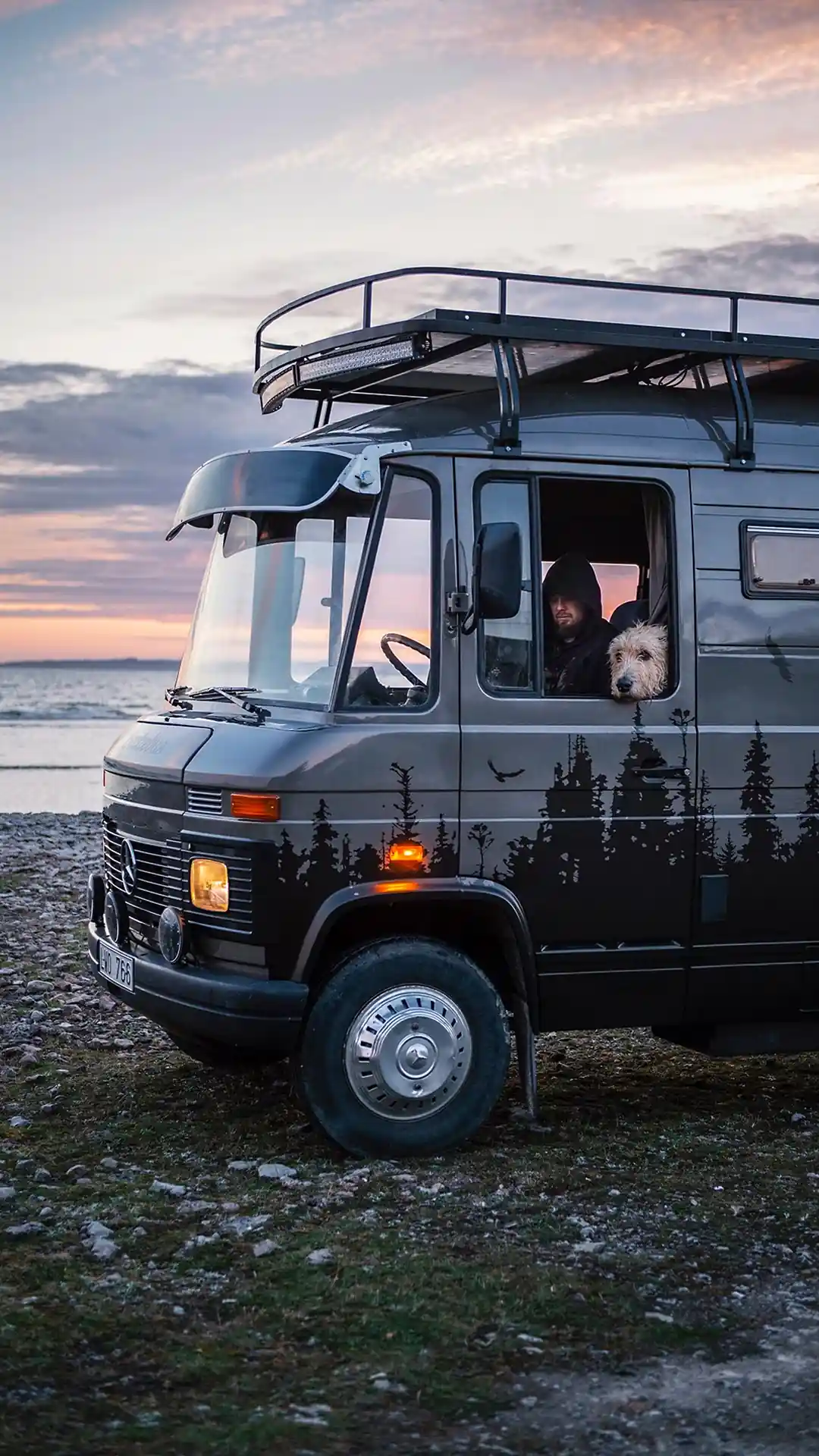 Вернувшись из своего путешествия Катя и Бьорн решили переделать фургон Mercedes-Benz 508D под комфортабельный дом на колесах, добавив тонну функциональности. В итоге была проделана колоссальная работа и получился уютный кемпер на троих – для молодой пары и их верного четвероного друга, пса Бальтазар.
