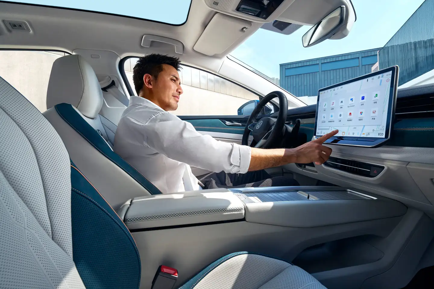 В салоне — цифровая приборка, проекционный дисплей с дополненной реальностью и аудиосистема Harman Kardon с 16-канальными динамиками. Стандартно предлагается мультимедийная система с 15,0-дюймовым дисплеем и голосовым управлением. В списке систем помощи водителю интеллектуальный дворецкий Mate AI, ассистент парковки и автопилот Travel Assist 3.0 с функцией автоматического включения фар и смены полосы движения. Также «китайский» ID. 7 использует новейшую систему HMI (человеко-машинный интерфейс).