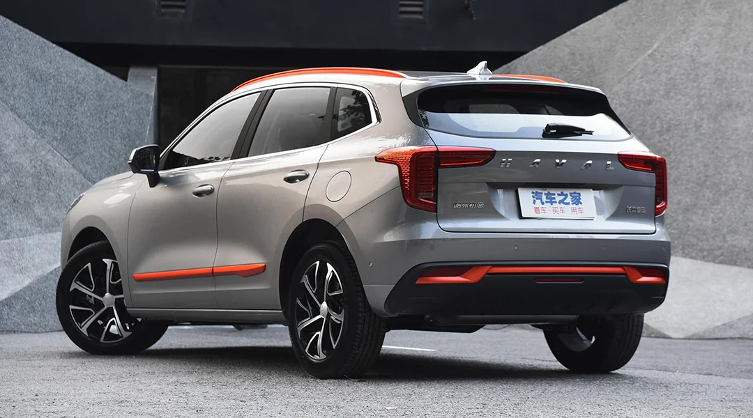 Кроссовер Haval получил характерную хромированную решетку радиатора, оригинальный передние фары и L-образные задние фонари, мощный бампер, рейлинги на крыше, широкие колесные арки, накладки на пороги и яркие цветовые акценты по всему кузову. Салон выглядит современно. Внутри появились цифровая приборная панель, мультимедийная система с функцией голосового управления и распознания лиц, проекционный дисплей, вращающийся селектор переключения коробки передач и огромный спектр систем помощи водителю.