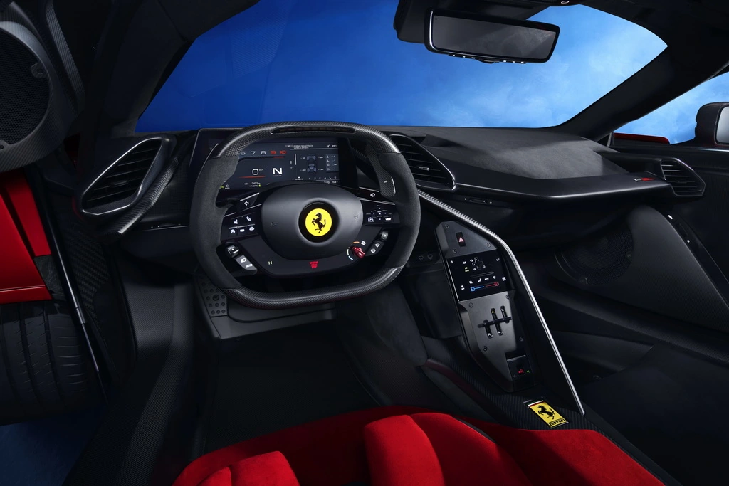 С помощью тумблера eManettino на многофункциональном руле пилот болида может выбирать между тремя режимами Hybrid, Performance и Qualify. Режима eDrive, который доступен для суперкаров SF90 Stradale и 296 GTB, – нет, так как F80 не может двигаться на электротяге.