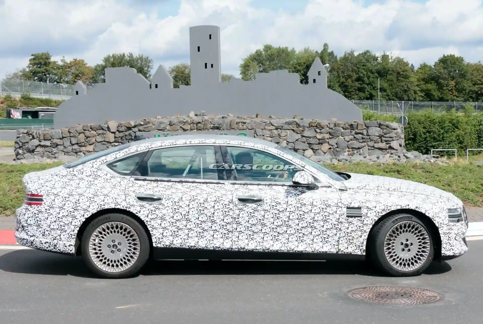 Компания Genesis приступила к испытаниям электрической модификации седана G80. Прототип eG80 замечен фотошпионами на проселочной дороге в окрестностях Нюрбургринга. С помощью нового электромобиля Hyundai планирует соперничать с Tesla Model S.