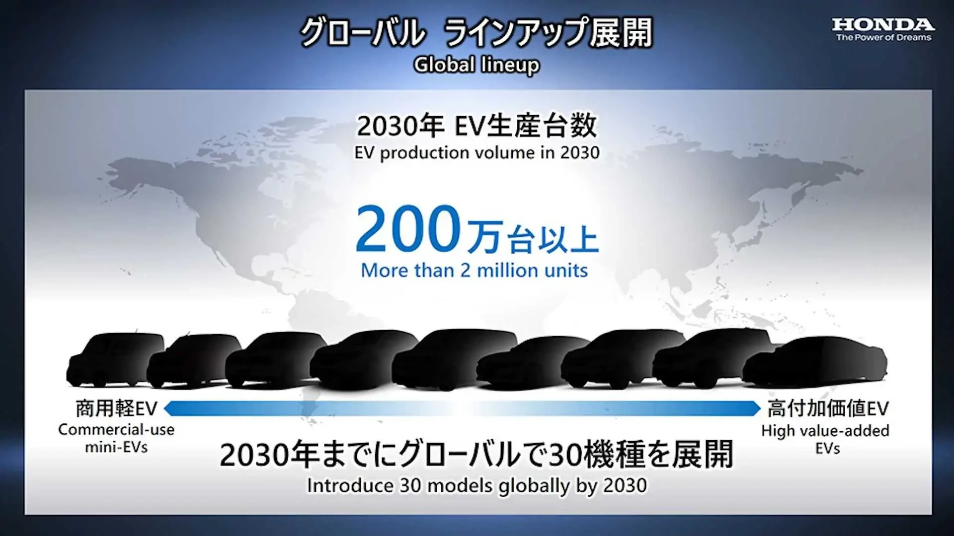 Во второй половине 2020-х годов появятся доступные электромобили Honda, которые все еще разрабатываются в рамках альянса с GM. Всего к 2030 году во всем мире будет представлено 30 моделей электромобилей Honda, а производство будет составлять более 2 миллионов единиц в год.