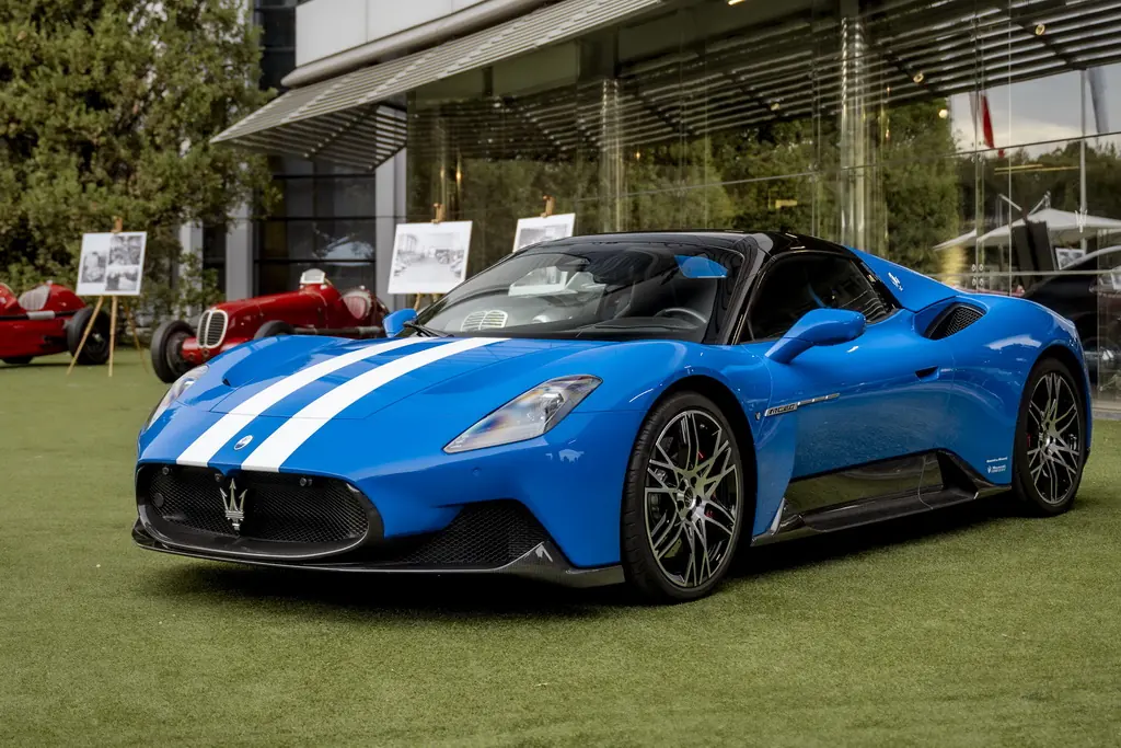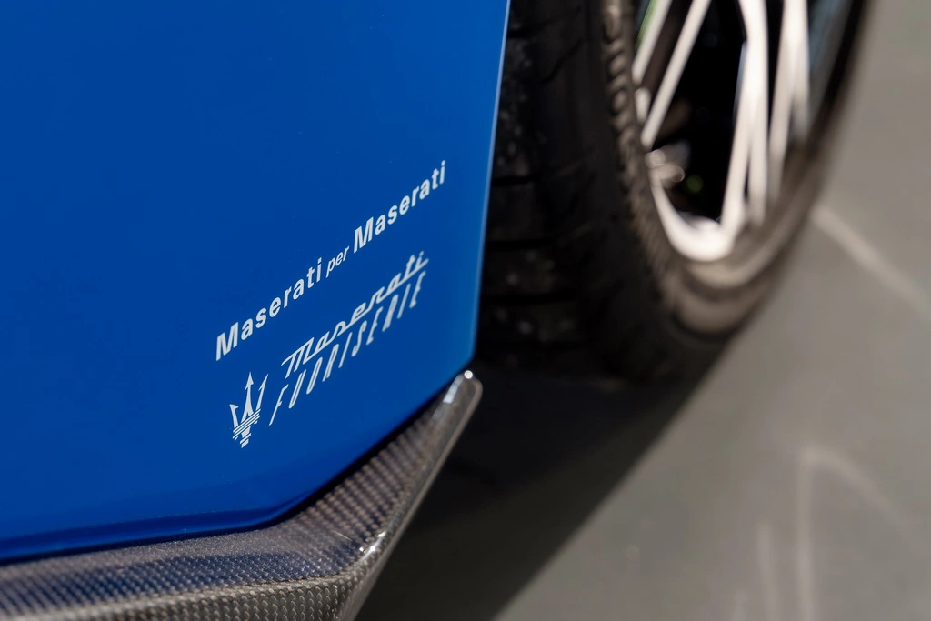 Ливрея Blu Infinito — один из самых характерных цветов бренда, дополнен двойной полосой в цвете Bianco Pastello и трезубцем в цвете Grey Pastel. Также автомобиль отличается комплектом карбоновых элементов, логотипами «Maserati per Maserati», «Maserati Fuoriserie» и «MC20 Maserati per Maserati». Под черными глянцевыми 20-дюймовыми дисками хорошо видны ярко-красные тормозные суппорты.