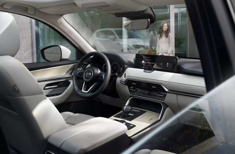 В оснащение кабины Mazda CX-80 войдет цифровая приборная панель и мультимедийная система с 12,3-дюймовым экраном с беспроводными Apple CarPlay и Android Auto, камеры кругового обзора, проекционный дисплей, фоновое освещение и система распознания лиц.
