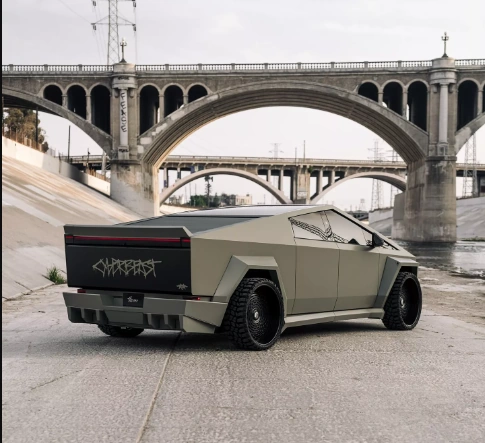 Кузов Cybertruck обтянули специальной защитной пленкой и установили 26-дюймовые глянцевые черные колесные диски от Forgiato, обутые во внедорожные шины. Оценили этот широкофюзеляжный обвес в 9990 долларов. Ателье намерено выпустить около сотни такой пакетов для Cybertruck.