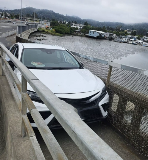 В Калифорнии (США) произошла курьезная авария. Водитель Toyota Camry запутался на дороге и въехал на пешеходный мост.