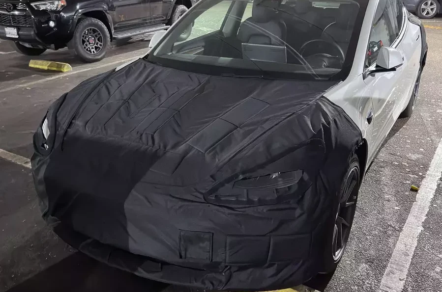 Tesla работает над обновленной версией Model 3. Закамуфлированные прототипы модели были замечены на одной из стоянок в Санта-Крус (штат Калифорния, США).