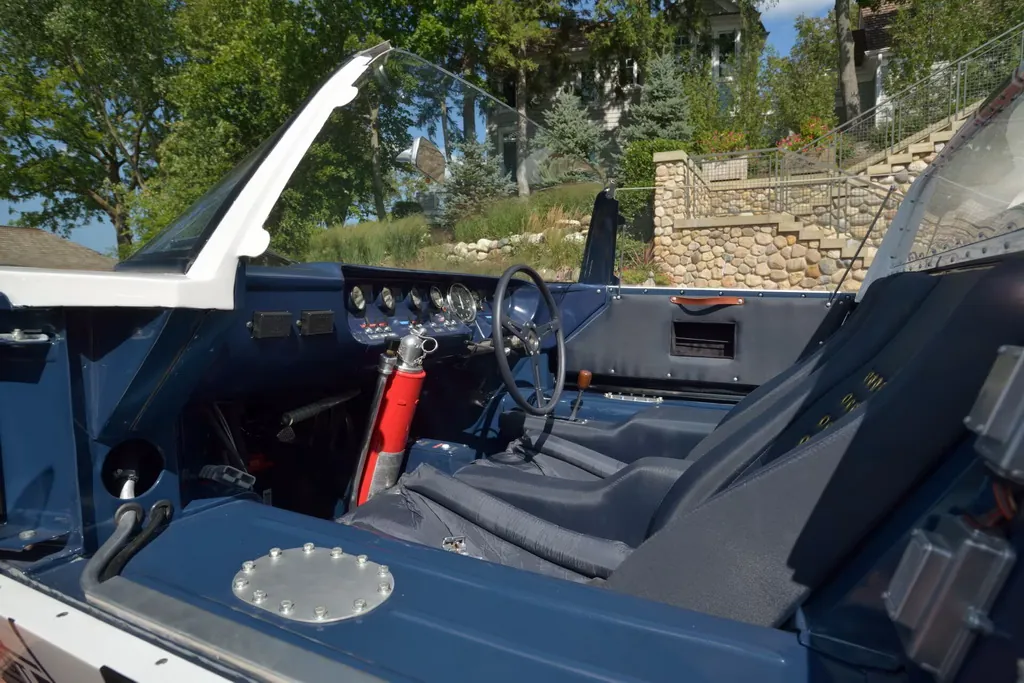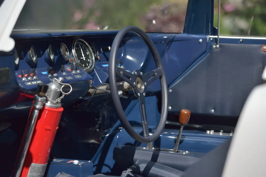 Другие соответствующие периоду компоненты на этом родстере серии GT Competition Prototype включают перестроенную коробку передач ZF 5DS-25/0 1965 года, фары SEV Marchal и светотехнику Cobra Daytona Coupe Cessna, магниевые диски Halibrand, шины 550/15 и 700/15 Goodyear Sport Car Special Blue Streak с наклейками 1965 года. Интересно, что в этом автомобиле установлена очень редкий стеклоочиститель NOS Ford GT Trico, а также фирменный тумблер стоп-сигнала Кэрролла Шелби, который изначально был в GT/109.