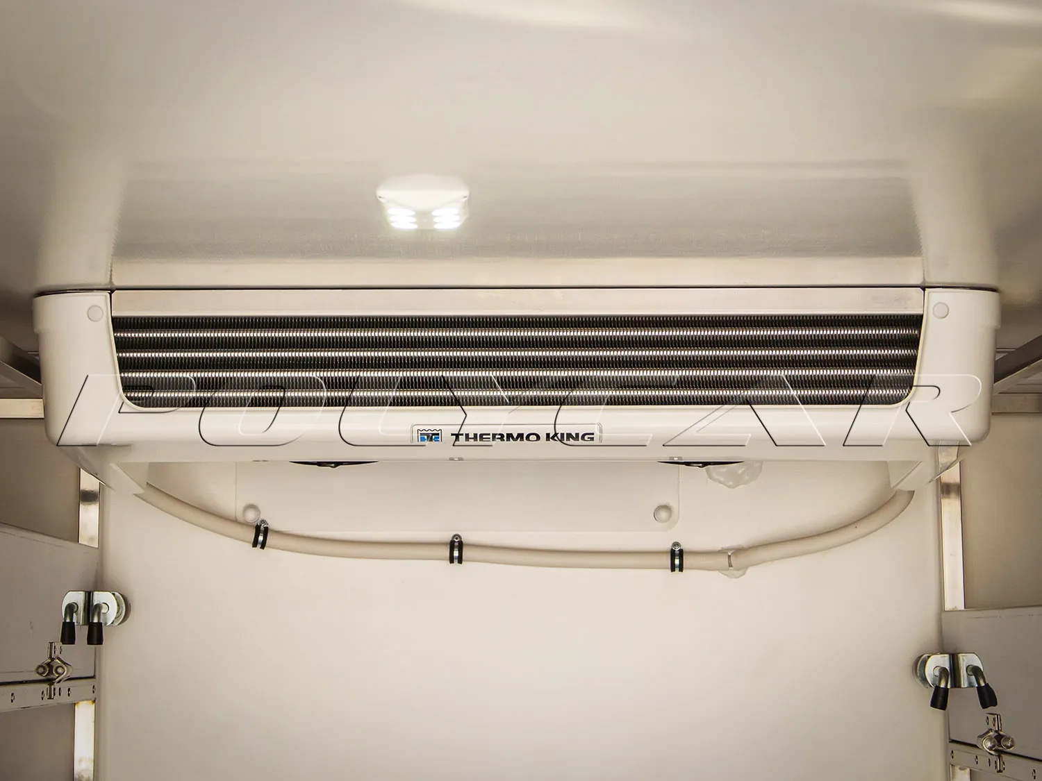 Верхняя часть фургона состоит из полок, расположенных в три яруса, на которых имеются крепежные петли и бортики высотой 150 мм. Поддерживать необходимую температуру в грузовом отсеке призвана холодильно-обогревательная установка Thermo King C350 eMax 30.