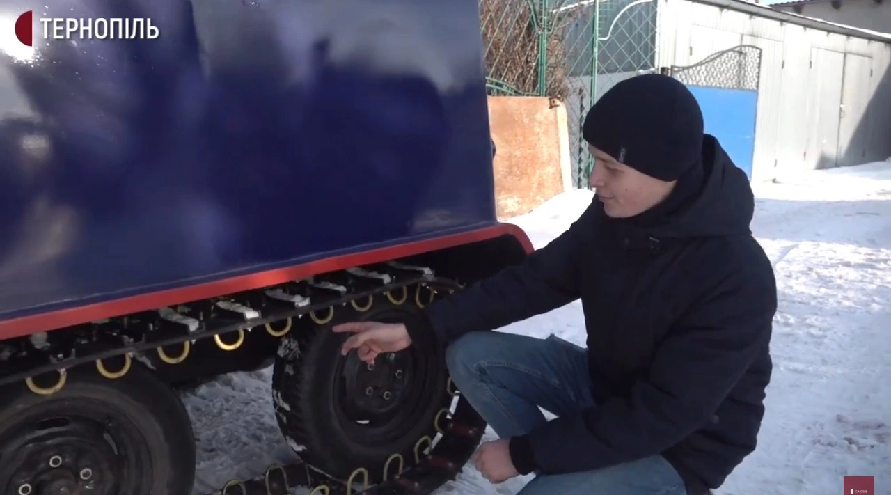 Игорь Радь из города Зборов Тернопольской области два с половиной года потратил на постройку гусеничного вездехода, передает UA:Перший. Кабину водителя позаимствовал от автомобиля польской марки Zuk – достаточно посмотреть на облицовку радиатора, лобовое стекло и рифленые двери.