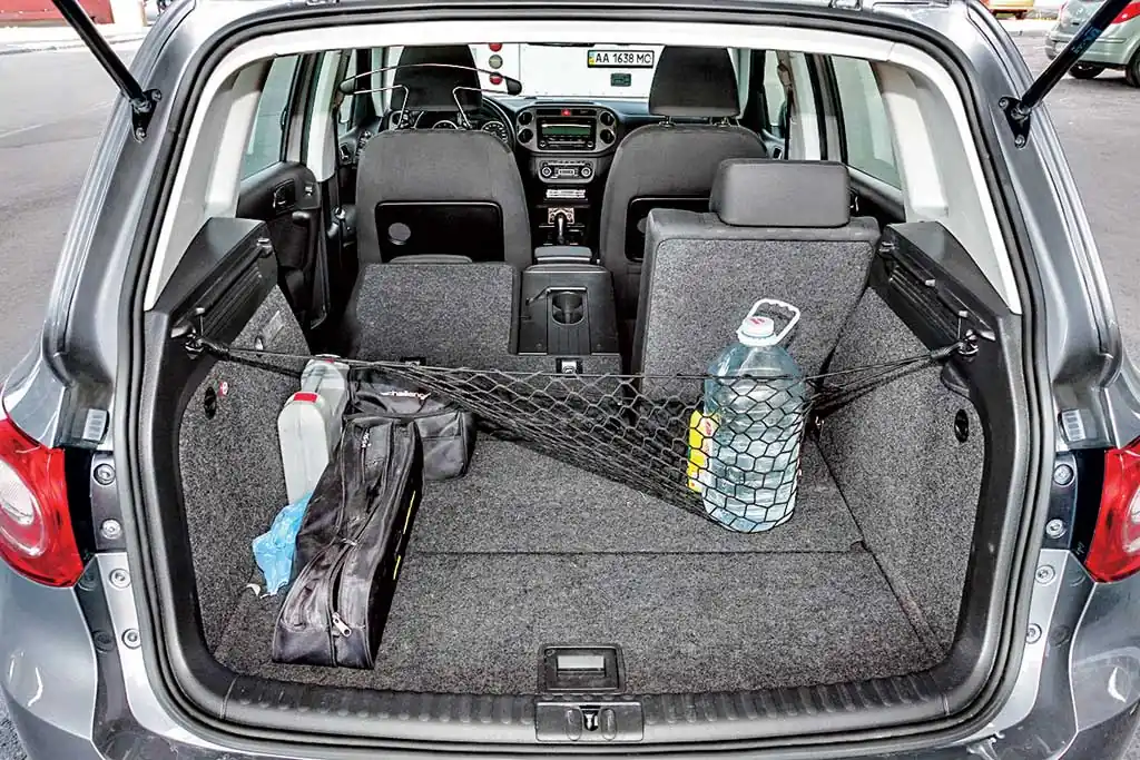 Внутри смогут разместиться пять членов экипажа, хотя на галерке удобно будет троим пассажирам некрупного телосложения. Благодаря сдвижной конструкции задних сидений (ездят назад/вперед на 16 см) и регулирующимся по наклону спинки (23°) в зависимости от ситуации можно менять приоритеты запаса места для ног и размера багажника. Впрочем, «походный» объем грузового отсека Tiguan в 470 л – один из наибольших среди «одноклассников».