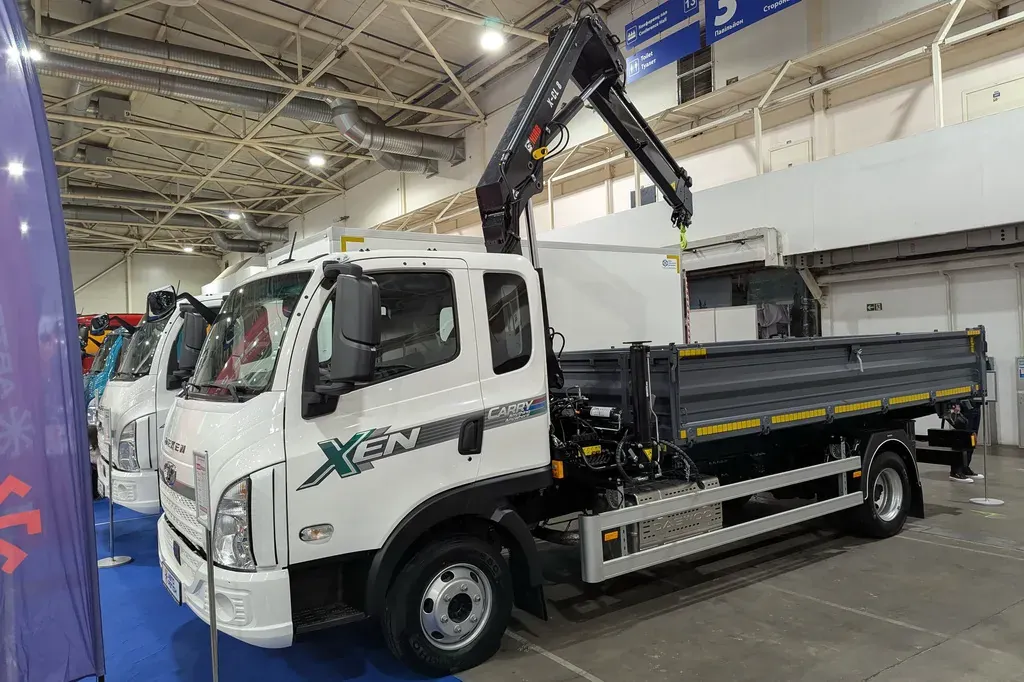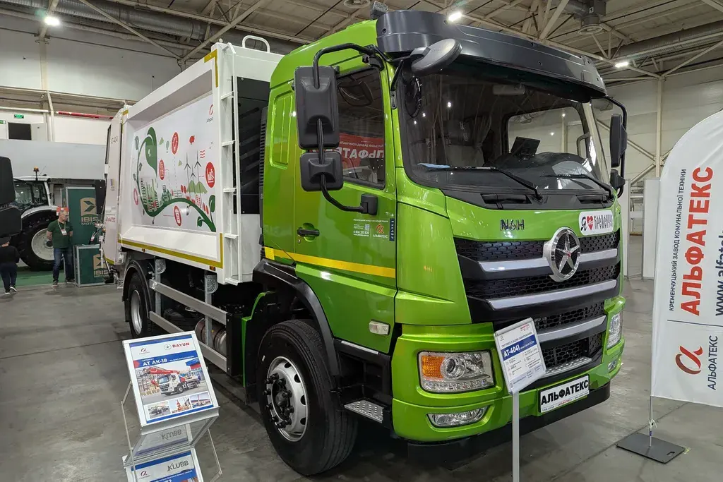 Кременчугский завод коммунальной техники «Альфатекс» представил на выставке ComAutoTrans 2025 четыре специализированных автомобиля. Один из них – автогидроподъемник итальянской марки CTE на шасси IVECO Daily 35C14D c двухрядной кабиной на 7 мест. Рычажно-телескопическая стрела обеспечивает высоту подъема 14 м, максимальный вылет 5,5 м и может вращаться на 360 град. Рядом расположился самосвал трехсторонней разгрузки АТВ-2/2 с кузовом полезным объемом 10 м3 и грузоподъемностью 8 т. В основе лежит среднетоннажное шасси Dayun CGC 1120. Еще одна новинка – мусоровоз задней загрузки АТ-4041 на шасси Dayun CGC 1210. Вместимость основного бункера составляет 16 м3. Машина способна перевозить около 9 тонн твердых бытовых отходов. Еще одна интересная и популярная модель от «Альфатекс» – передвижная аварийная мастерская для ремонтных бригад – АТ АМ-0102 на шасси Dayun CGC 1100. Отметим, что все представленные на выставки автомобили Dayun имеют богатую комплектацию.
