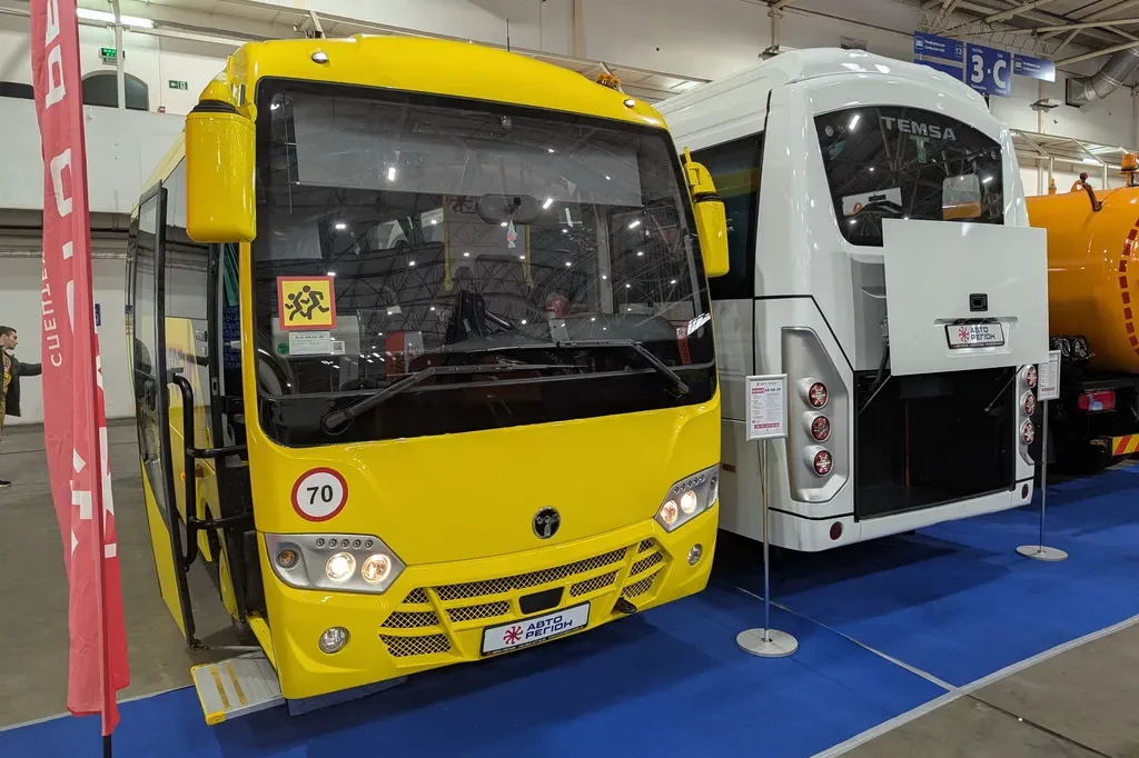 Для тех, кому нужен надежный и неприхотливый автобус, компания "Авто-Регион" подготовила две модели марки Temsa – 29-местный школьный автобус Temsa AR SB-29, длиной 7,17 м. Он построен на базе междугородной модели Temsa Prestij SX, которая была представлена по соседству.