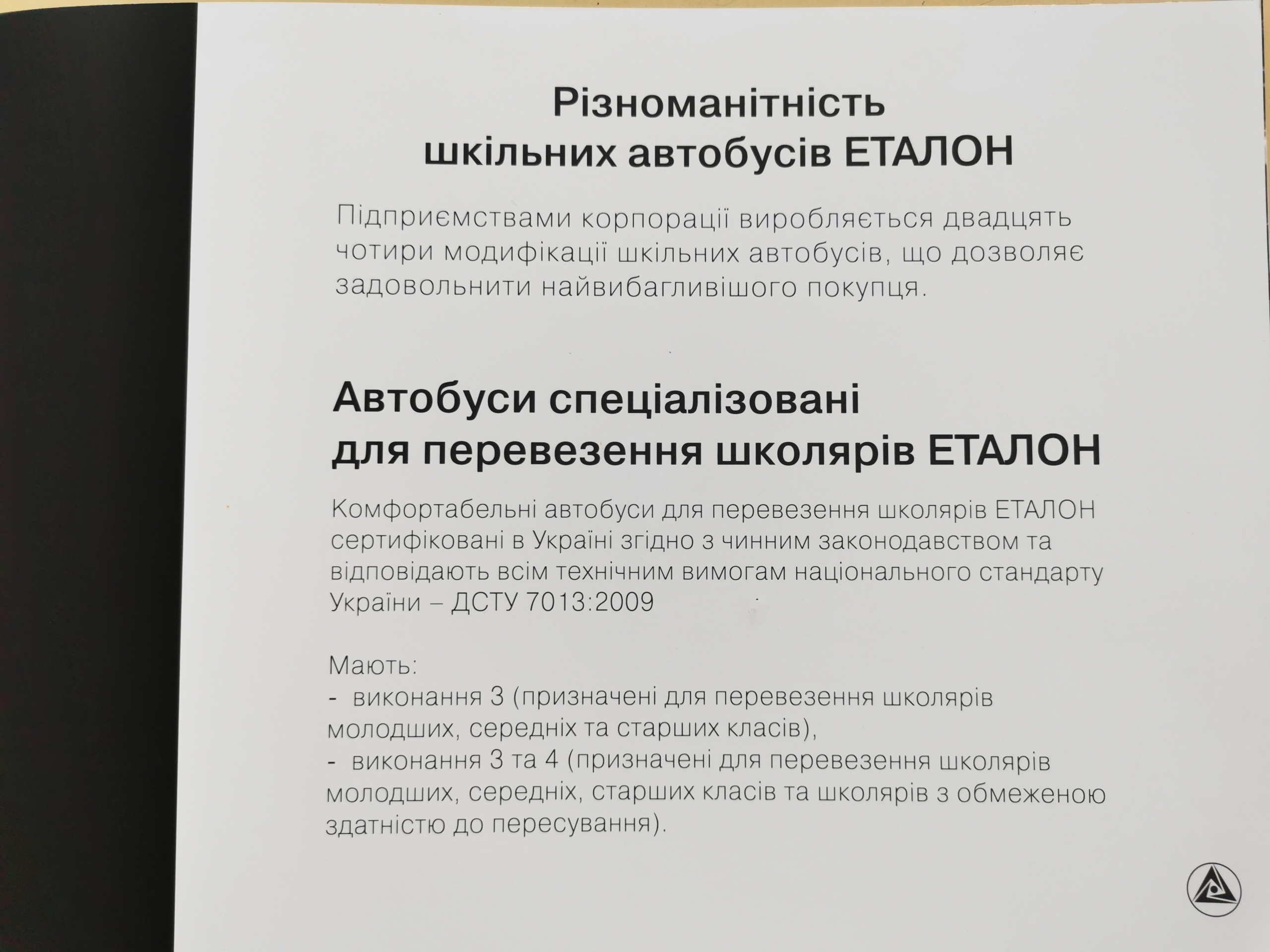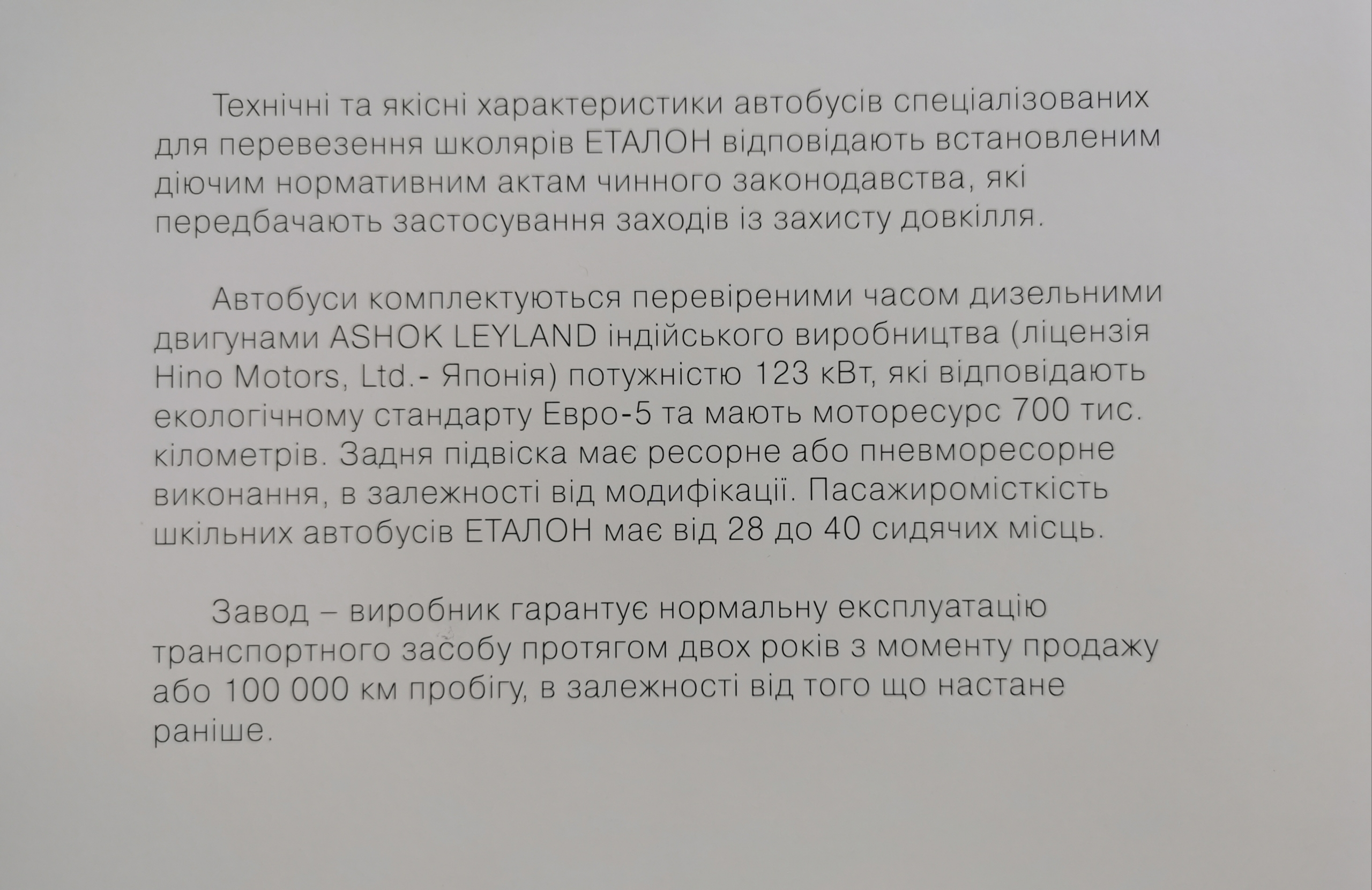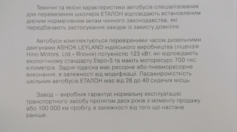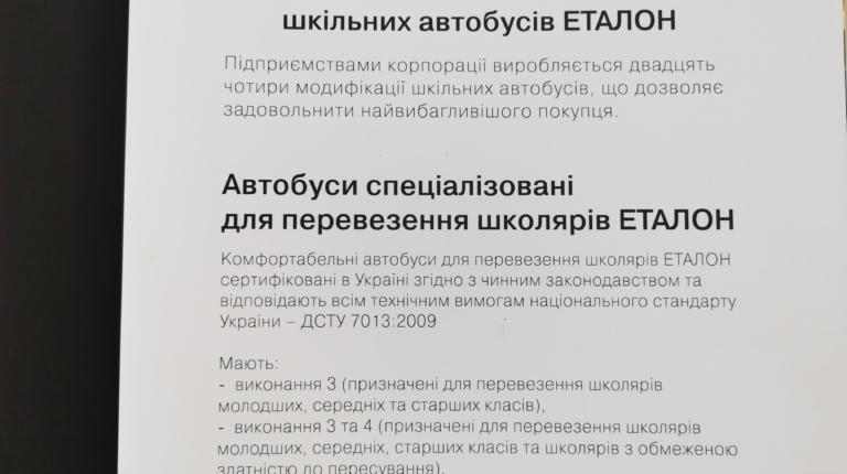 Поэтому представители корпорации «Эталон», куда входит Черниговский автозавод, провели 3 июня в УНИАН пресс-конференцию, на которой рассказали о сложившейся ситуации с закупками школьных автобусов. Было озвучено предложение о необходимости (на законодательном уровне) унифицировать систему разработки тендерной документации таким образом, чтобы участник готовил минимальное количество необходимых документов. А технические требования к предмету закупки были основаны на нормативных документах (ДСТУ, приказы и регламенты Министерств и т. д.), а не ограничивали участников непонятными придуманными требованиями.
