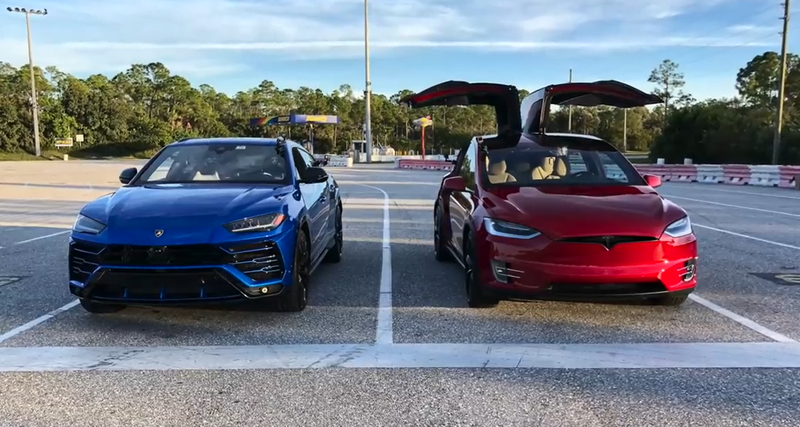 В данном случае речь идет о Lamborghini Urus – первом кроссовере итальянской марки, который оснащается 641-сильным V8 объемом 4 л. Сразилась с ним самая быстрая версия “икса” – P100D, на борту которой 588 сил.