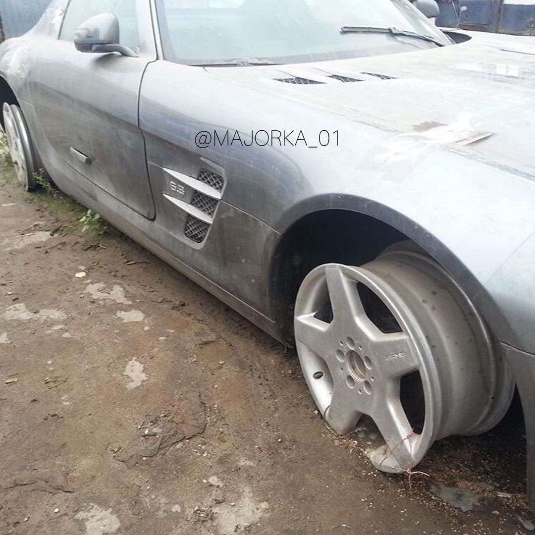 Фотографии покинутого Мерседес СЛС опубликовал пользователь инстаграма majorka_01. Он же рассказал краткую историю этой машины.