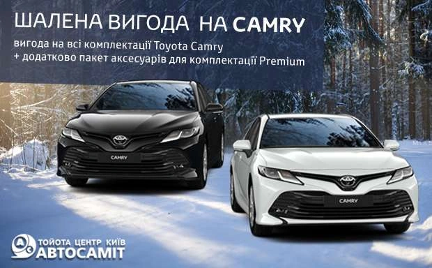 Починаючи з 17 січня 2020 року Тойота Центр Київ «Автосаміт» на Харківському шосе, 179 пропонує усім можливість вигідно придбати автомобіль Camry та Camry Hybrid .