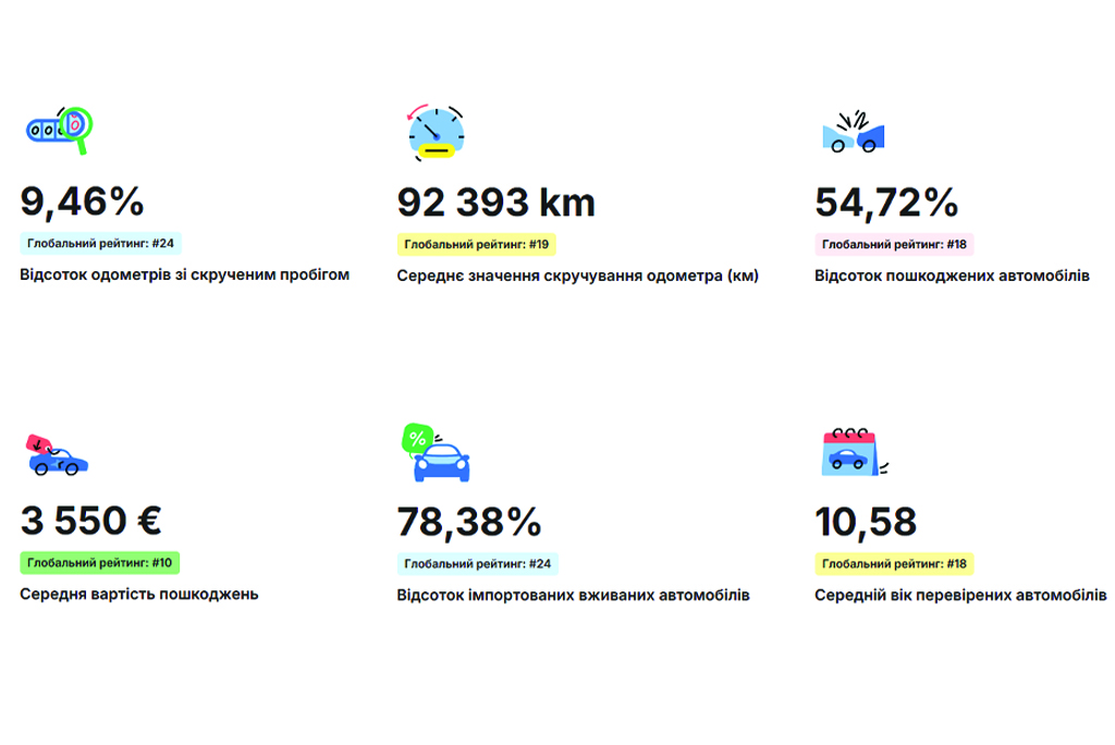 Дослідження виявило, що в Україні досі продаються автомобілі зі скрученим пробігом. Цього року 9,5 % перевірених транспортних засобів мали ознаки махінацій з одометром. Середнє скручування пробігу становило 92 400 км.