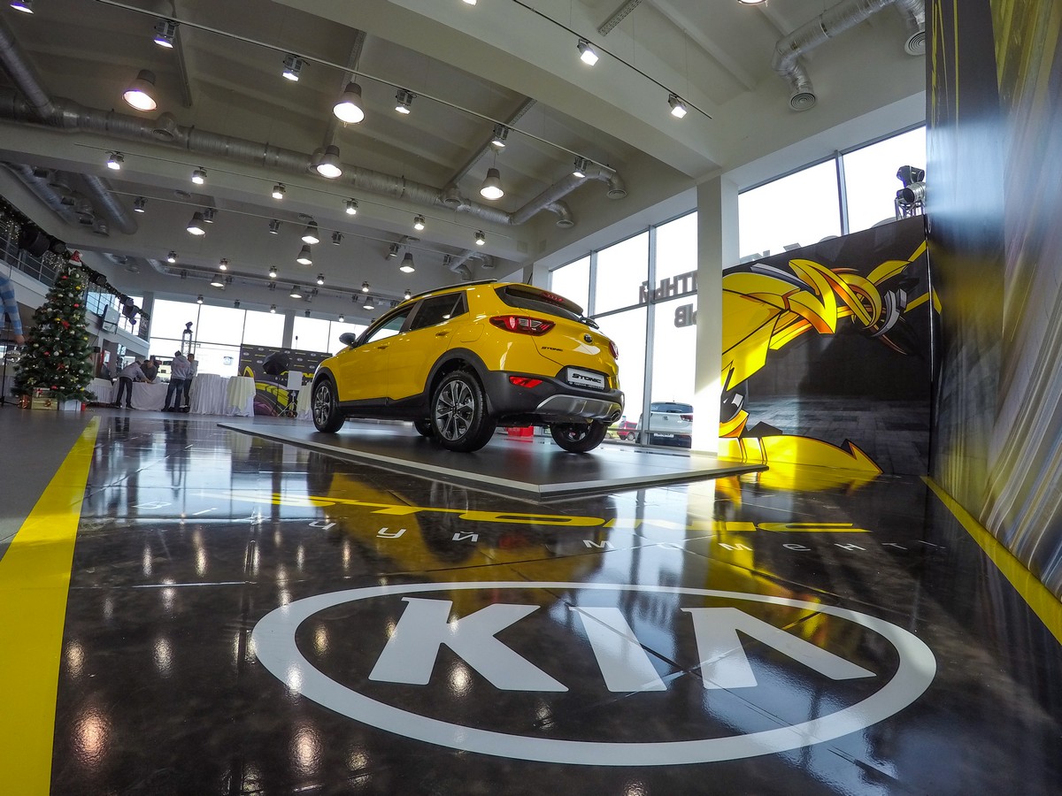 Новий Kia Stonic, виконаний у жовтому кольорі, зустрічав гостей у спеціально обладнаній бренд-зоні, яку було виконано у стилі міського графіті, аби підкреслити характер автомобіля, орієнтованого на молодих людей, що проводять свій час переважно у великих мегаполісах.