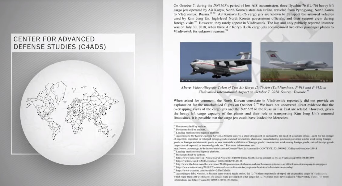 Позже он возник под флагом африканской страны Того и отправился в порт Владивостока. Оттуда автомобили отправились в КНДР с помощью северокорейских грузовых самолетов, которые находились в России. Очень интересная история.