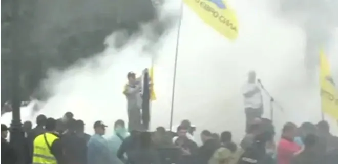 Глава управления Нацполиции Киева Андрей Крищенко сообщил, что протесты пока проходят относительно спокойно, без столкновений и провокаций, но без использования дымовой шашки активисты все же не обошлись.