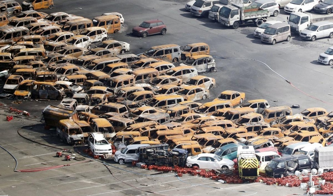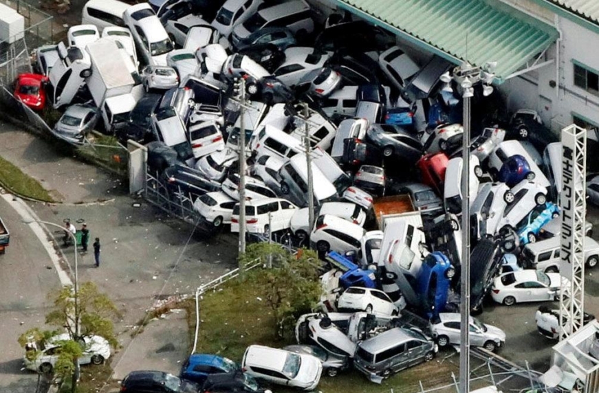 Грандиозный тайфун превратил тысячи машин в груду металла (фото)